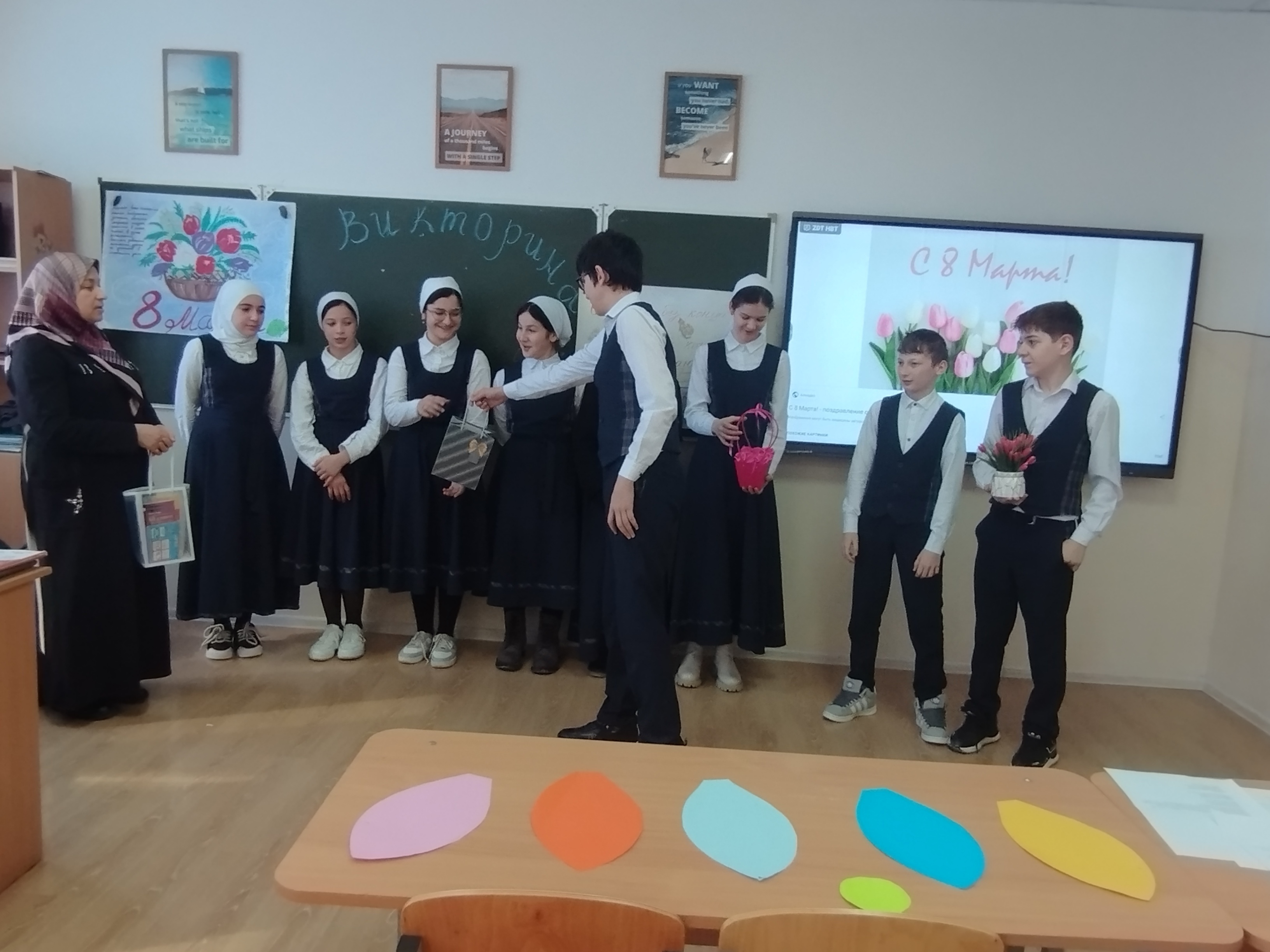 «Такие мероприятия помогают не только проявить эрудицию, но и сплотить коллектив, создавая теплую весеннюю атмосферу. Мы хотели не только развлечь детей, но и донести до них важность уважения и поддержки женщин в нашей жизни», — отметила классный руководитель 7-го класса Сайдаева Эсила Адуваевна. Завершилась викторина торжественным награждением победителей памятными сувенирами и творческими подарками от мальчиков. Праздник оставил у участников яркие впечатления и заряд отличного настроения на все выходные.