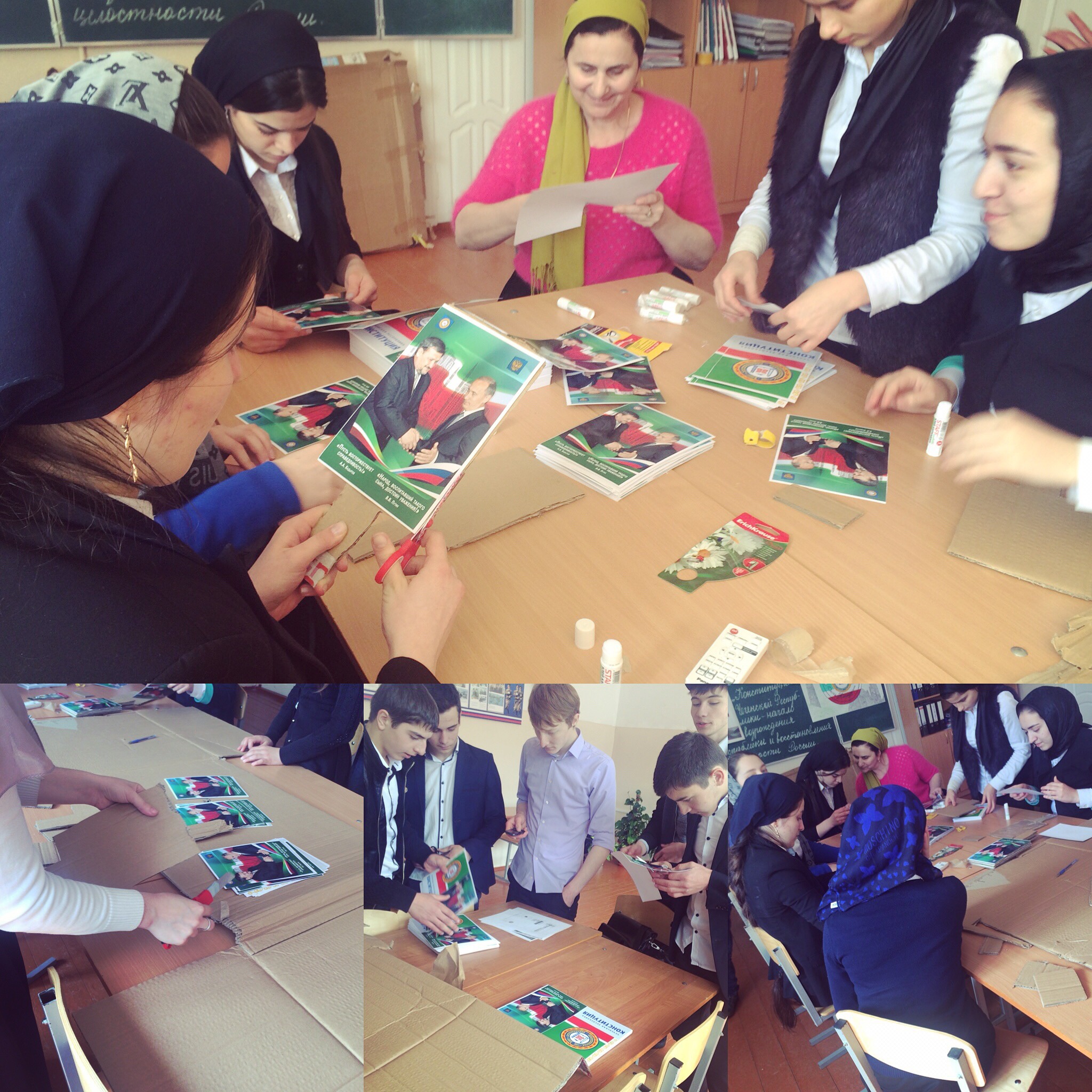 17 марта в школе развернулась настоящая мастерская по изготовлению транспорантов ко Дню Конституции ЧР.