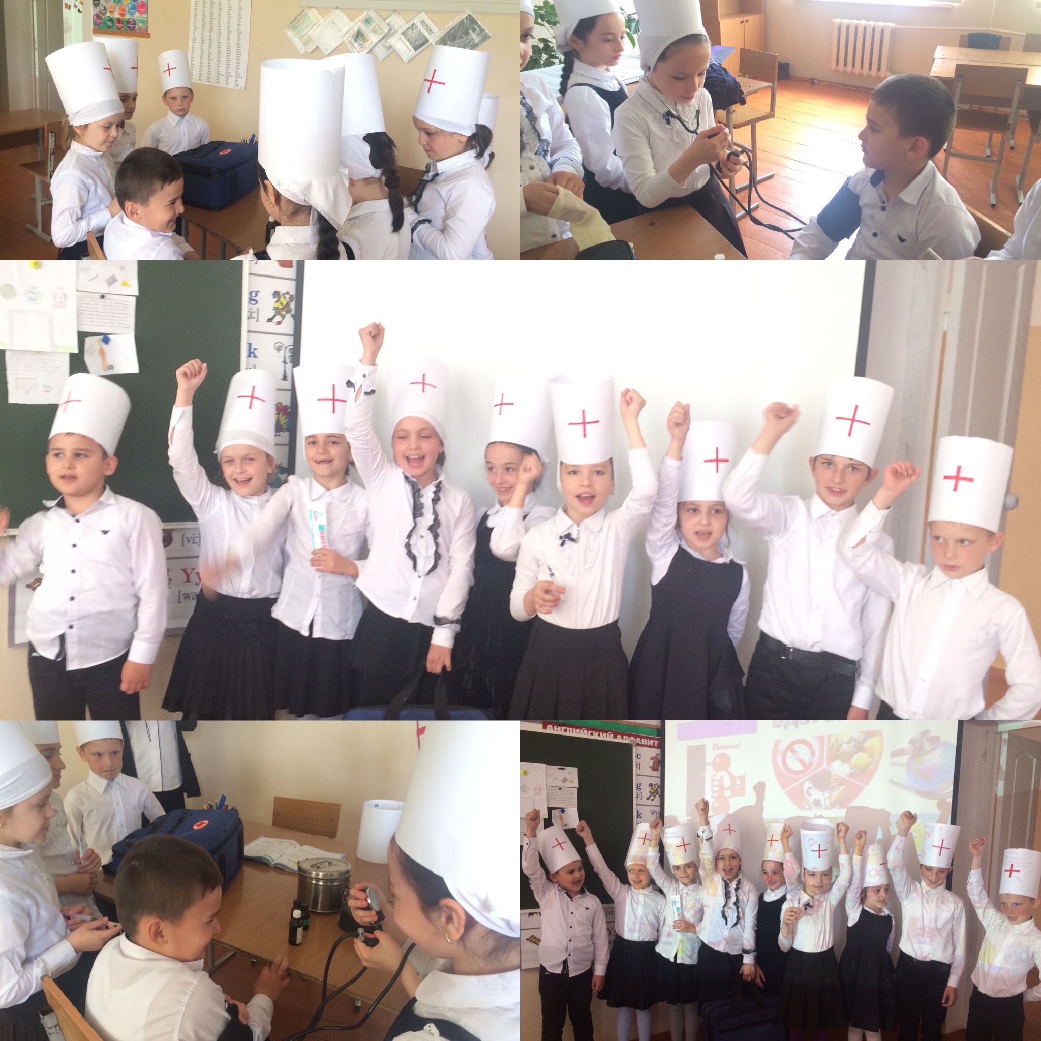 Во втором классе учитель английского языка Сайдаева Э. А. провела импровизированный урок «Доктора здоровья». Учащиеся с помощью учителя представили себя в роли докторов, добровольно помогающих нуждающимся, они измеряли давление, прикладывали компресс, повязку на «больное» место. Детям очень понравилась такая ролевая игра, они охотно участвовали в акции, помогали, становились более внимательными друг к другу.