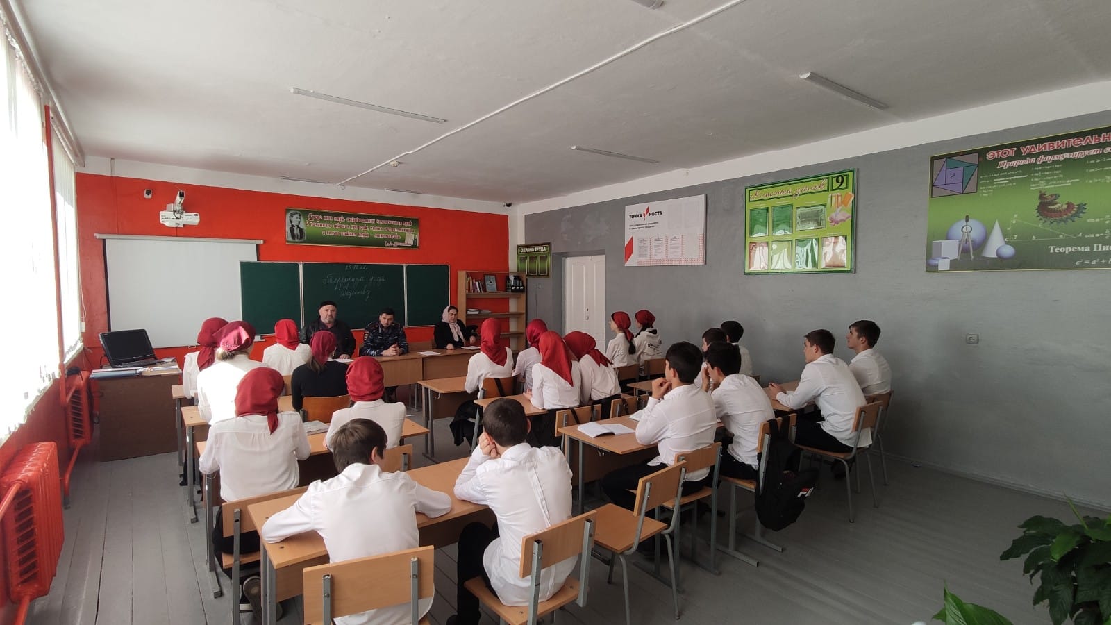 15 ноября 2022г. в МБОУ "СОШ с.Памятой" были проведены уроки, посвященные спецоперации на Украине. В уроках также принял участие участковый уполномоченный старший лейтенант Угаев Мансур Мовладиевич.