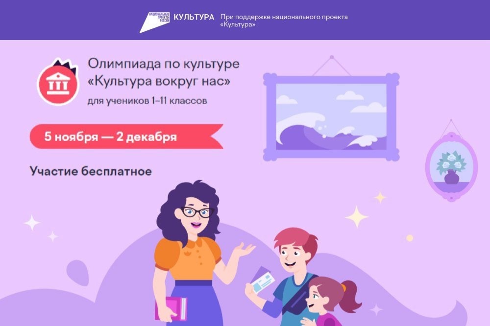Ключевая цель соревнования — развить интерес к русской культуре — языку, литературе, истории и искусству — и взглянуть на нее через призму современной жизни. Проект реализуется при поддержке национального проекта «Культура».Интерактивные задания помогут школьникам не только проверить свои знания, но и расширить кругозор, повысить общую эрудицию, а также тренируют образное и системное мышление. По итогу соревнования участники также научатся находить взаимосвязи между отечественной культурой и историей.«Вместе с партнерами Учи.ру мы всегда стараемся сделать олимпиаду интересным и ярким событием учебного года. В этот раз "Культура вокруг нас" охватит разные школьные предметы и области знаний — будут вопросы по русскому языку, литературе, искусству.. Ребята смогут не только проверить себя, но и расширить кругозор, а также познакомиться с мерами национального проекта "Культура". В прошлом году в Олимпиаде приняли участие более миллиона школьников по всей стране. В этом году состязание охватит и учащихся старших классов. Уверены, знания, полученные во время прохождения заданий, помогут в учебе и сдаче экзаменов», — сказала София Малявина, генеральный директор АНО «Национальные приоритеты».Для прохождения Олимпиады не требуется специальных знаний. Олимпиада состоит из 8 заданий и включает в себя разнообразный набор тем, чтобы ребенку было интересно и полезно её проходить. Нестандартный подход к решению задач помогает тренировать логику и критическое мышление.«Мы видим особый интерес школьников к тематике олимпиады. В проекте этого года мы сделали акцент на межпредметности — например, одно из заданий погружает в историю через изучение устаревших слов, другое — позволяет найти географические отсылки в литературных произведениях. Это дает ученикам возможность не только проверить свои знания, но и посмотреть на школьные предметы в едином культурном контексте, увидеть взаимосвязи, и главное — пробудить любознательность и интерес к изучению нашего богатого наследия», — отмечает Дарья Островская, руководитель департамента олимпиад образовательной платформы Учи.ру.Олимпиада бесплатна и доступна для всех учеников с 1 по 11 класс. Для участия необходимо зарегистрироваться на сайте https://cultura.uchi.ru/ или войти с логином и паролем от Учи.ру. На решение заданий у школьников будет 60 минут. Все участники соревнования получают сертификат, грамоту или диплом, в зависимости от результата, а учителя – благодарственные письма.Партнёрами Олимпиады стали портал Культура.рф, платформа «Артефакт» и Библиотеки нового поколения.! СправочноПо национальному проекту «Культура» по всей России, в том числе в отдаленных регионах и в сельской местности, ежегодно открываются модельные библиотеки, современные кинозалы и виртуальные концертные площадки, обновляются Дома культуры, театры юного зрителя, театры кукол и детские школы искусств. Фестивали и выставки получают грантовую поддержку, реализуются волонтерские инициативы и творческие проекты, проводятся онлайн-трансляции лучших культурных событий и культурно-просветительские программы для школьников.