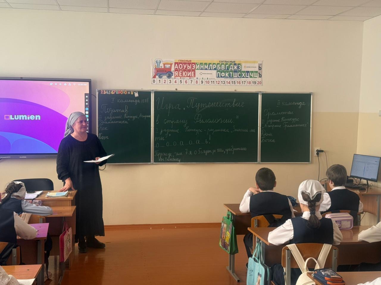 Учитель 4 класса Байсарова Е.Л. провела игру «Путешествие в страну филологию».