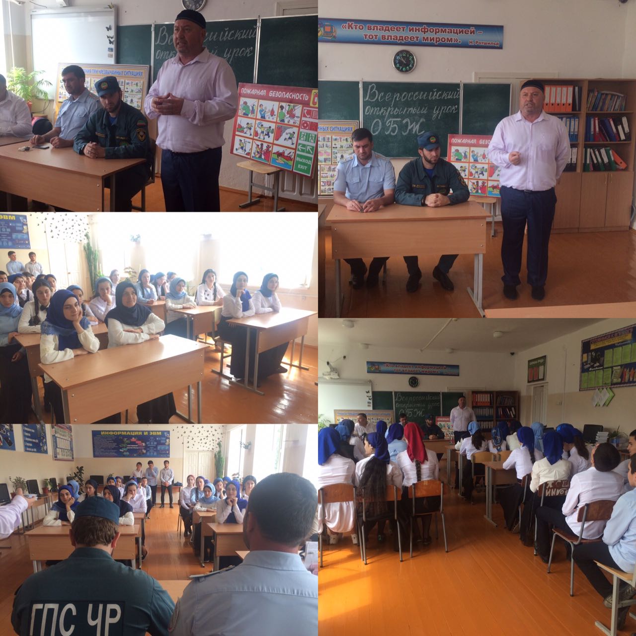 Урок провел учитель ОБЖ-Шаптукаев Х.Х. Он рассказал, как нужно себя вести в условиях различного рода экстремальных и опасных ситуаций, в том числе в местах массового пребывания людей, адаптации после летних каникул.