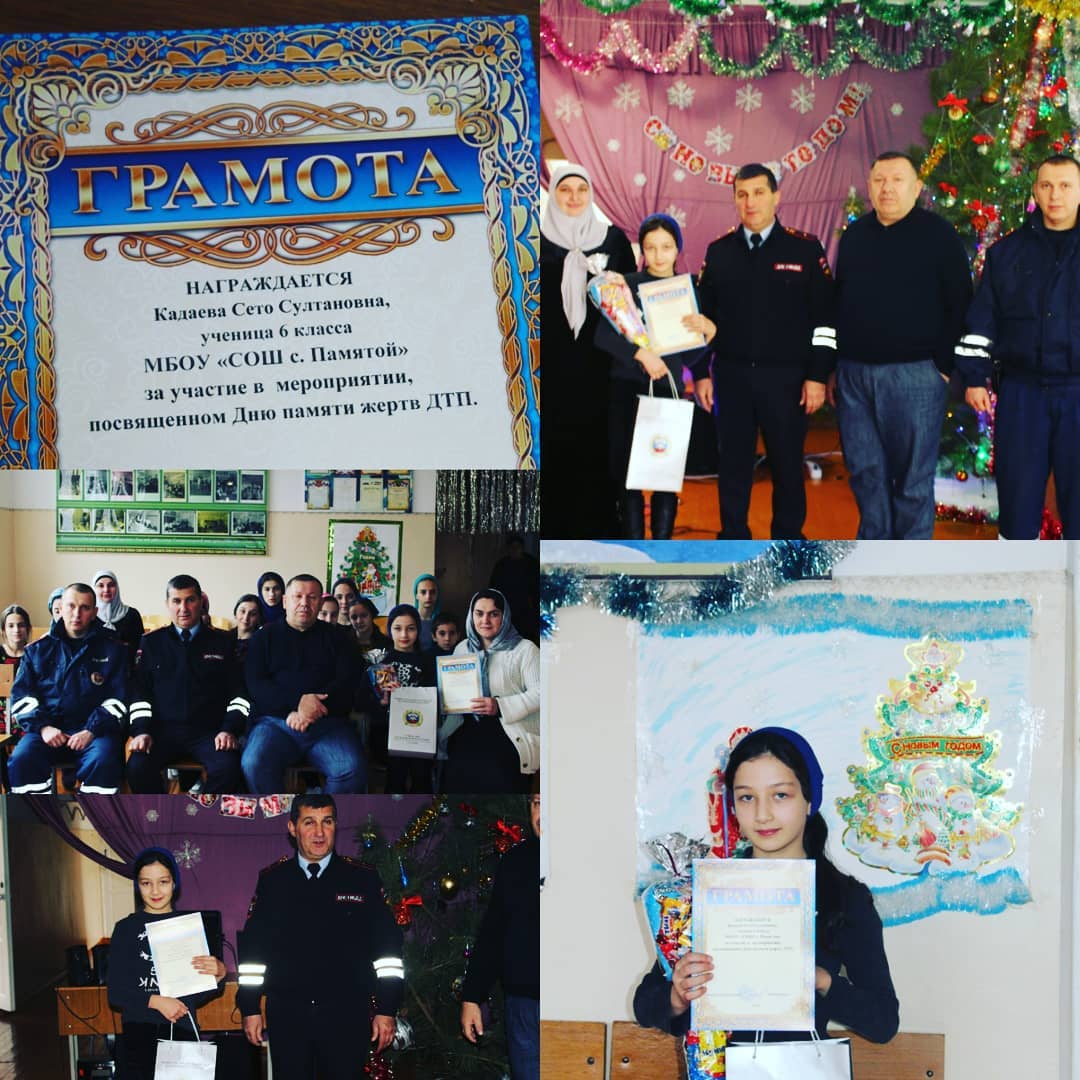 Ученица 6 класса МБОУ "СОШ с. Памятой" получила получила грамоту и подарки за участие в мероприятии, посвященному Дню памяти жертв ДТП.