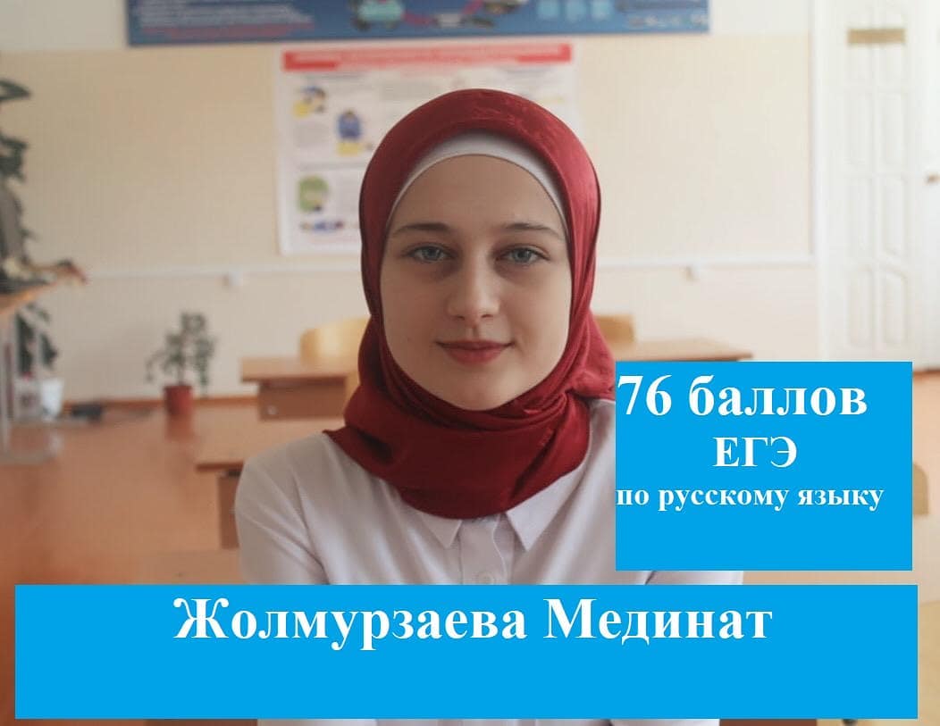 Выпускница МБОУ "СОШ с. Памятой" Жолмурзаева Мединат набрала 76 баллов на ЕГЭ по русскому языку.