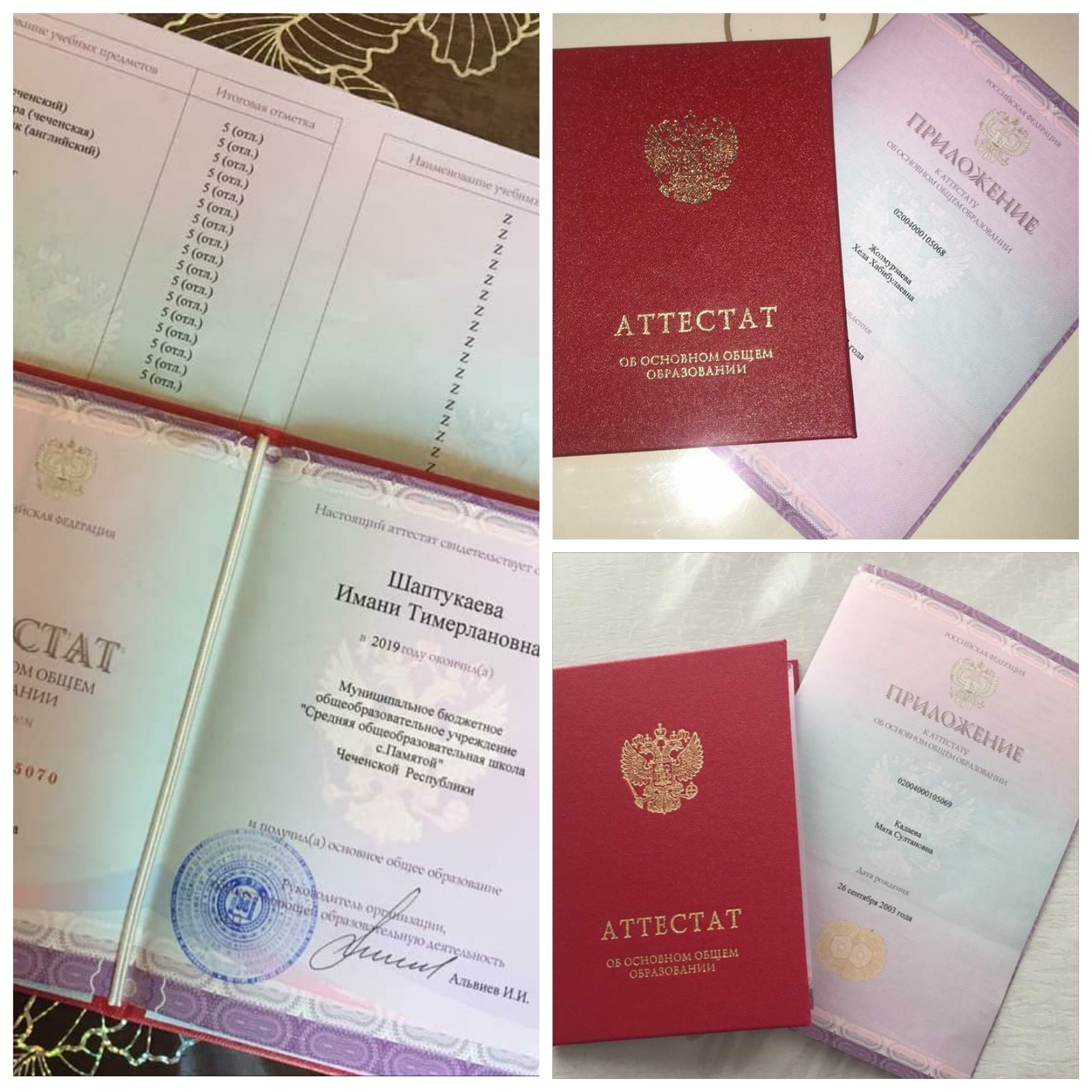 Порадовали нас также ученицы 9 класса Шаптукаева Имани, Жолмурзаева Хеда и Кадаева Мата получив аттестаты с отличием.